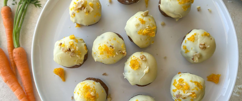 Delicious carrot cake bliss balls. Healthy, no bake and made under 20 minutes.